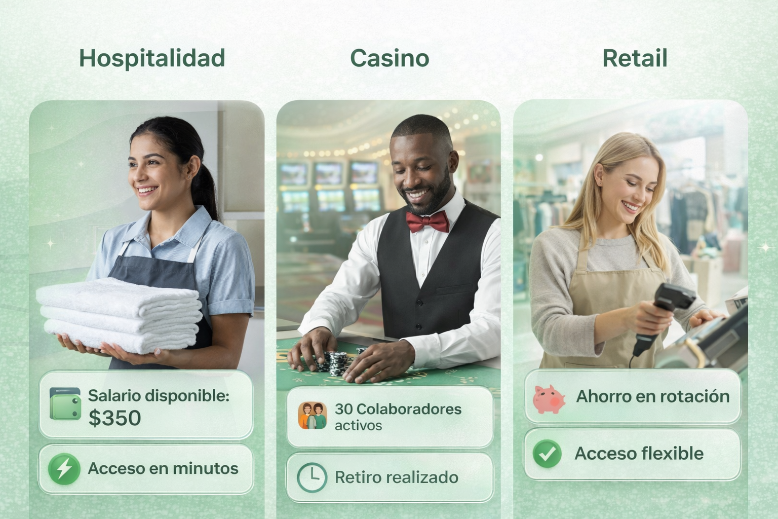 En lugar de esperar hasta el final de la quincena o del mes, los empleados pueden retirar una porción de su salario cuando lo necesiten, sin tener que recurrir a préstamos o tarjetas de crédito.